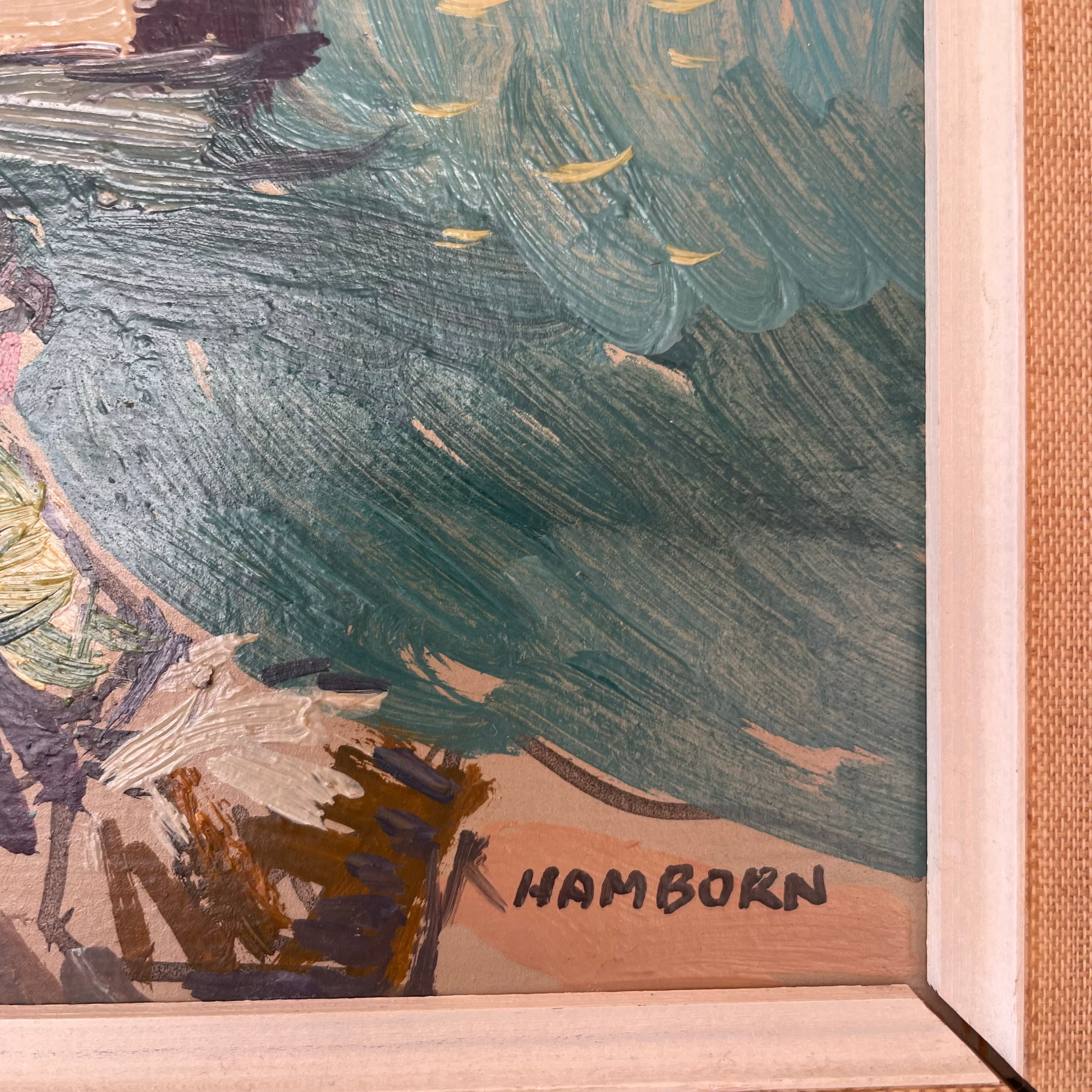 Mid-Century landscape by Swedish artist Axel Hamborn (1892-1971). Oil on board, signed. In original wooden frame with gold trim.