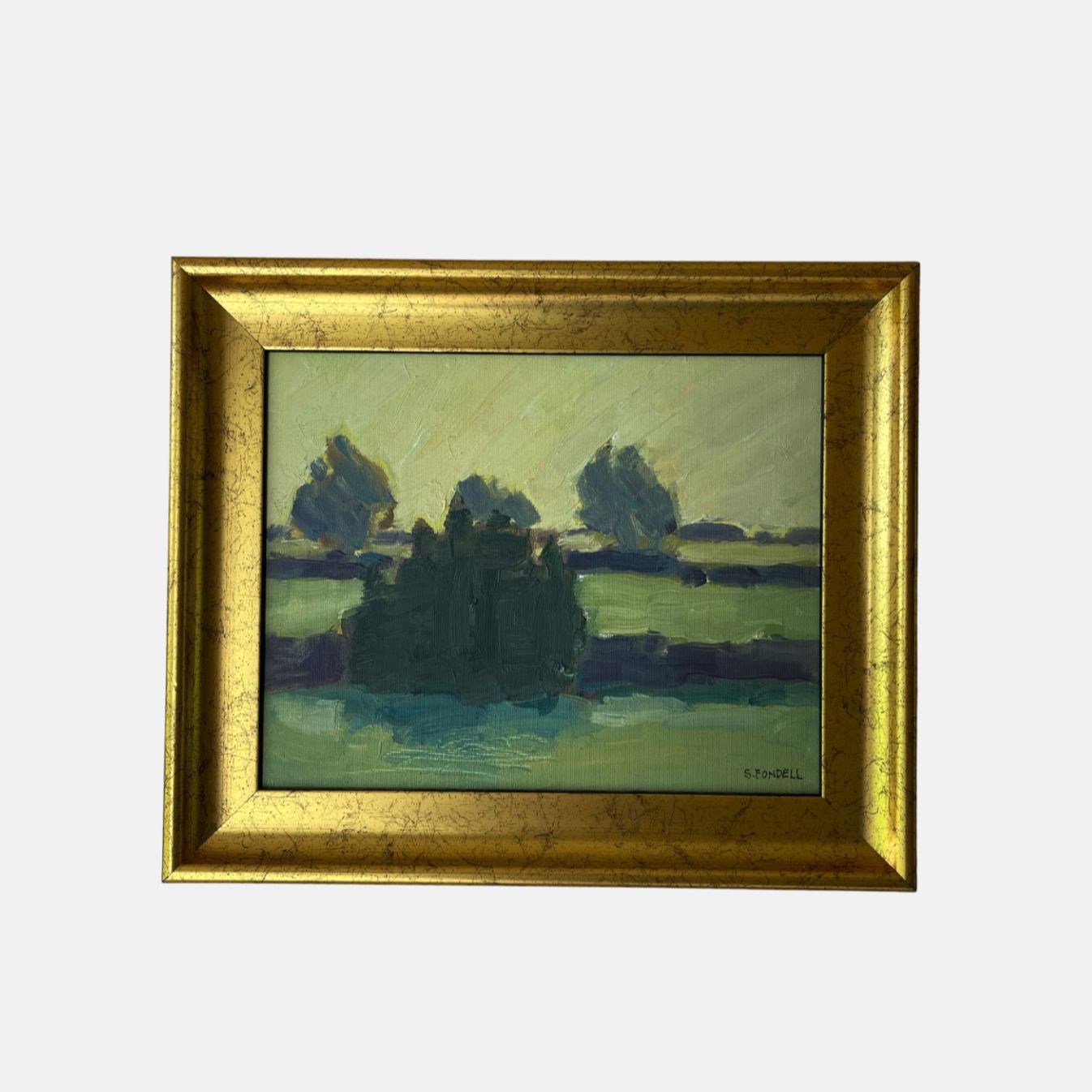 Oil on board In original gold frame signed by Swedish artist Sue Fondell.