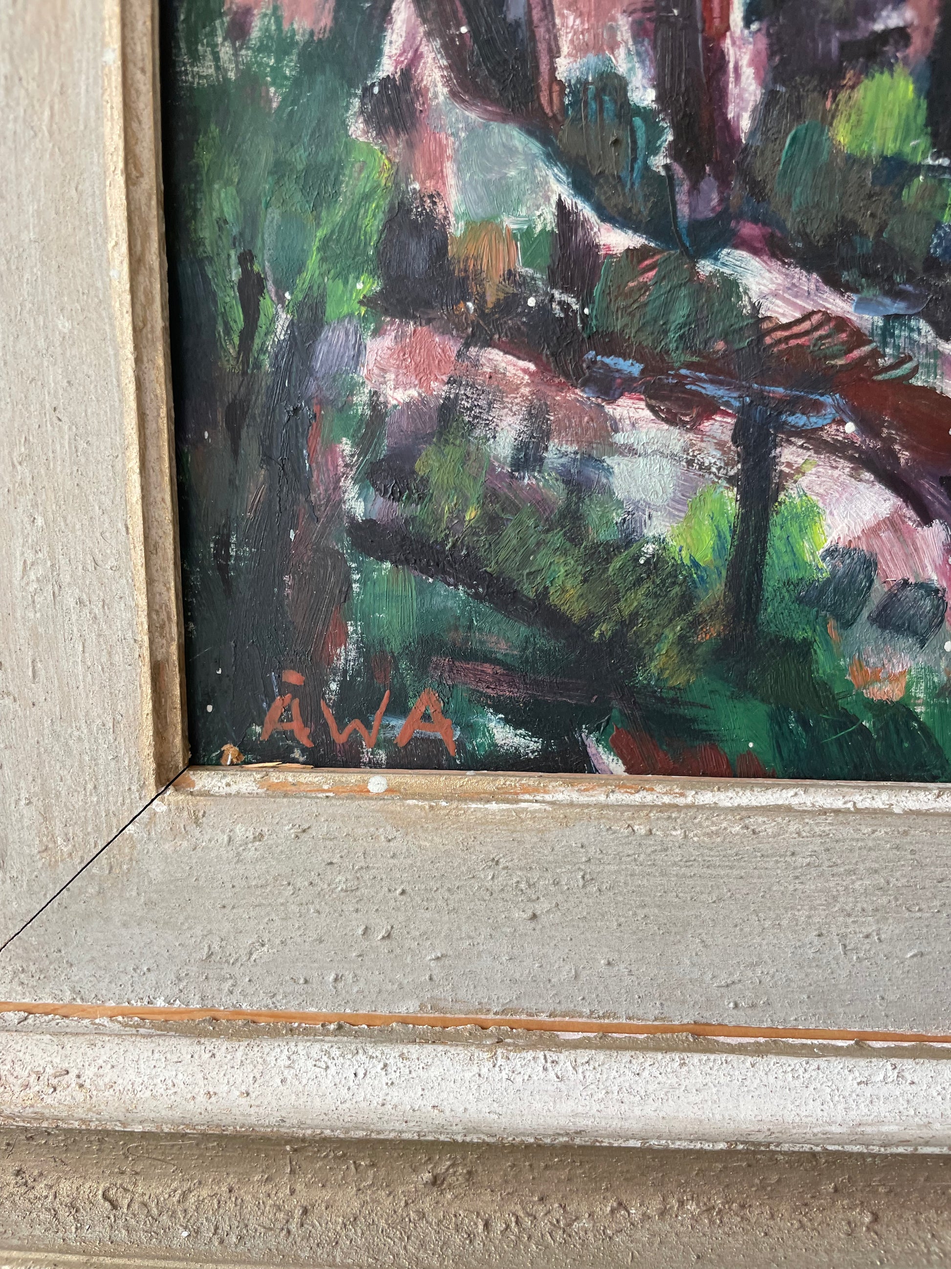 Set in a weathered gold-toned frame and signed by unknown Swedish artist.