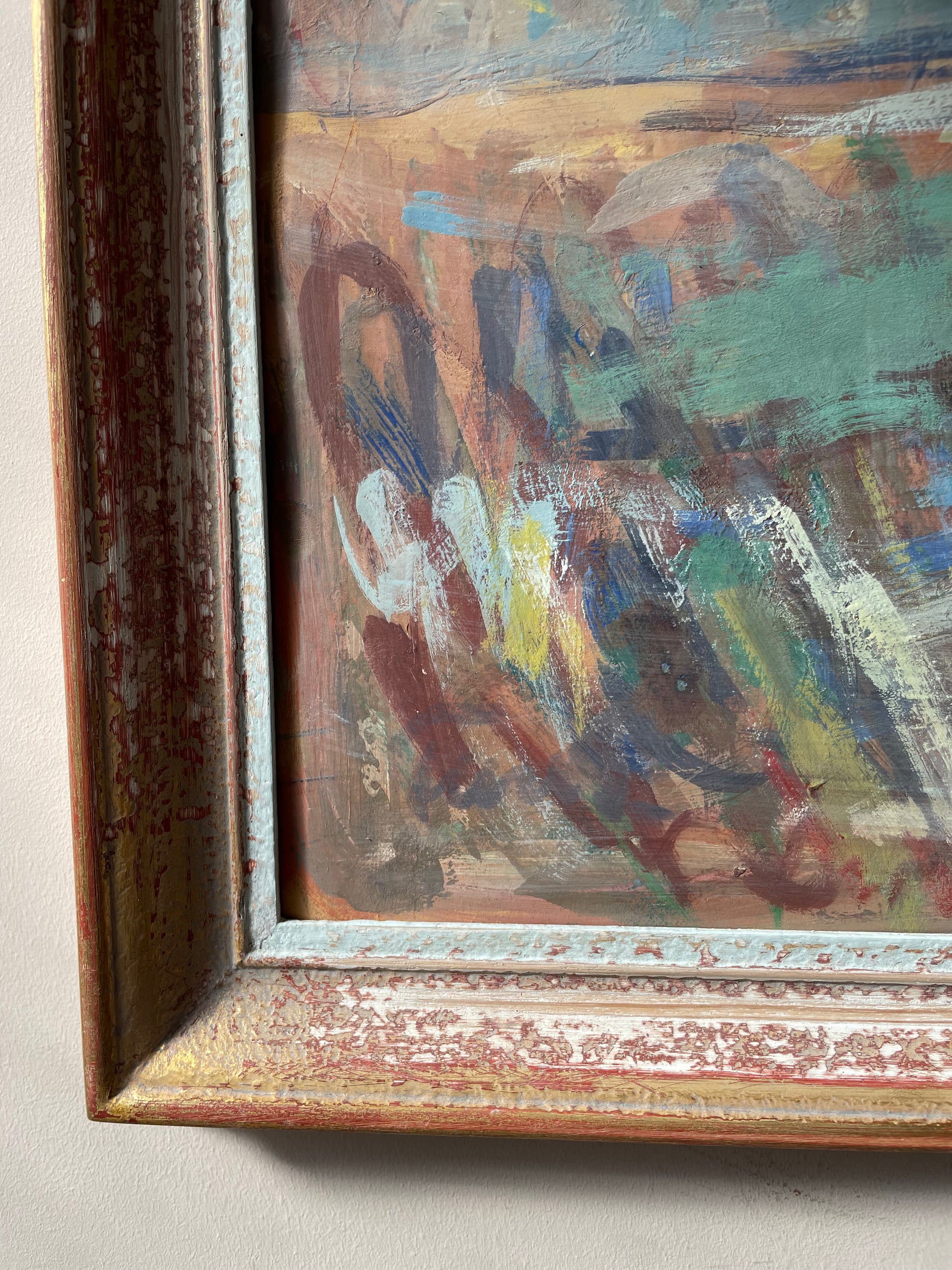 Oil on canvas in original distressed frame.