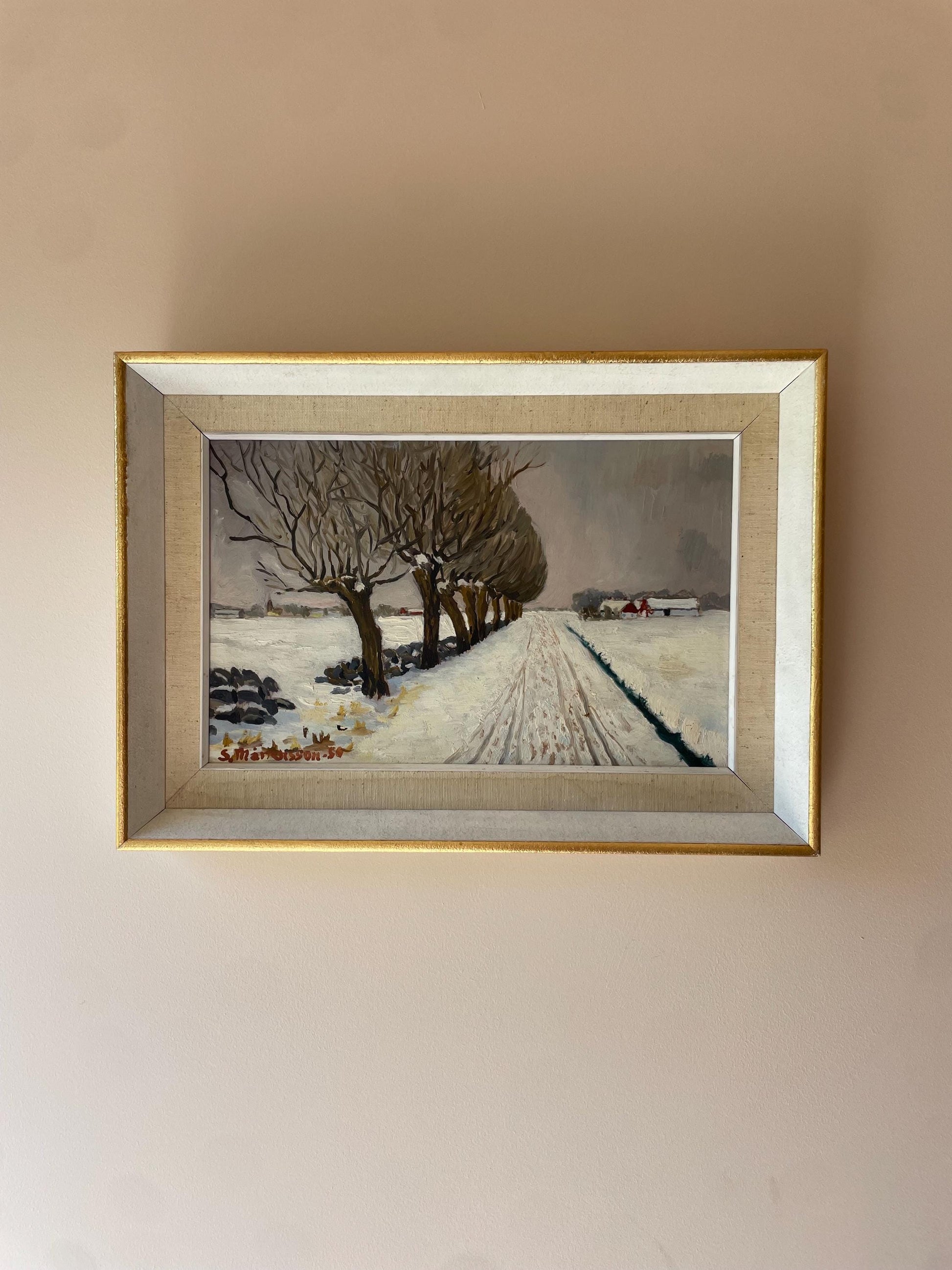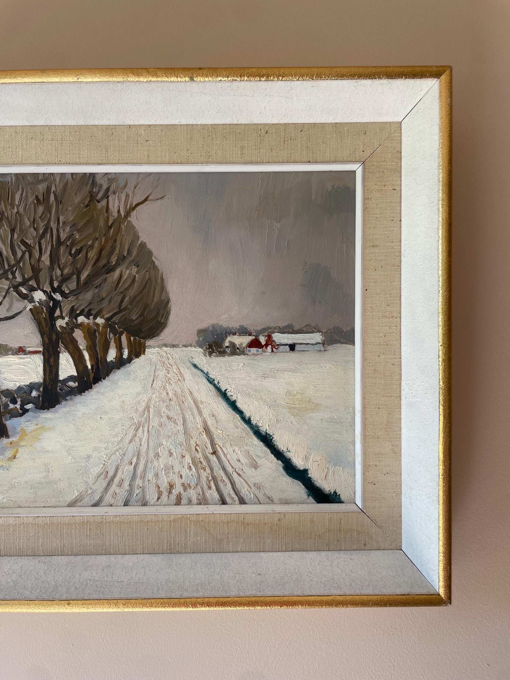 Oil on board in vintage gold trimmed frame.
