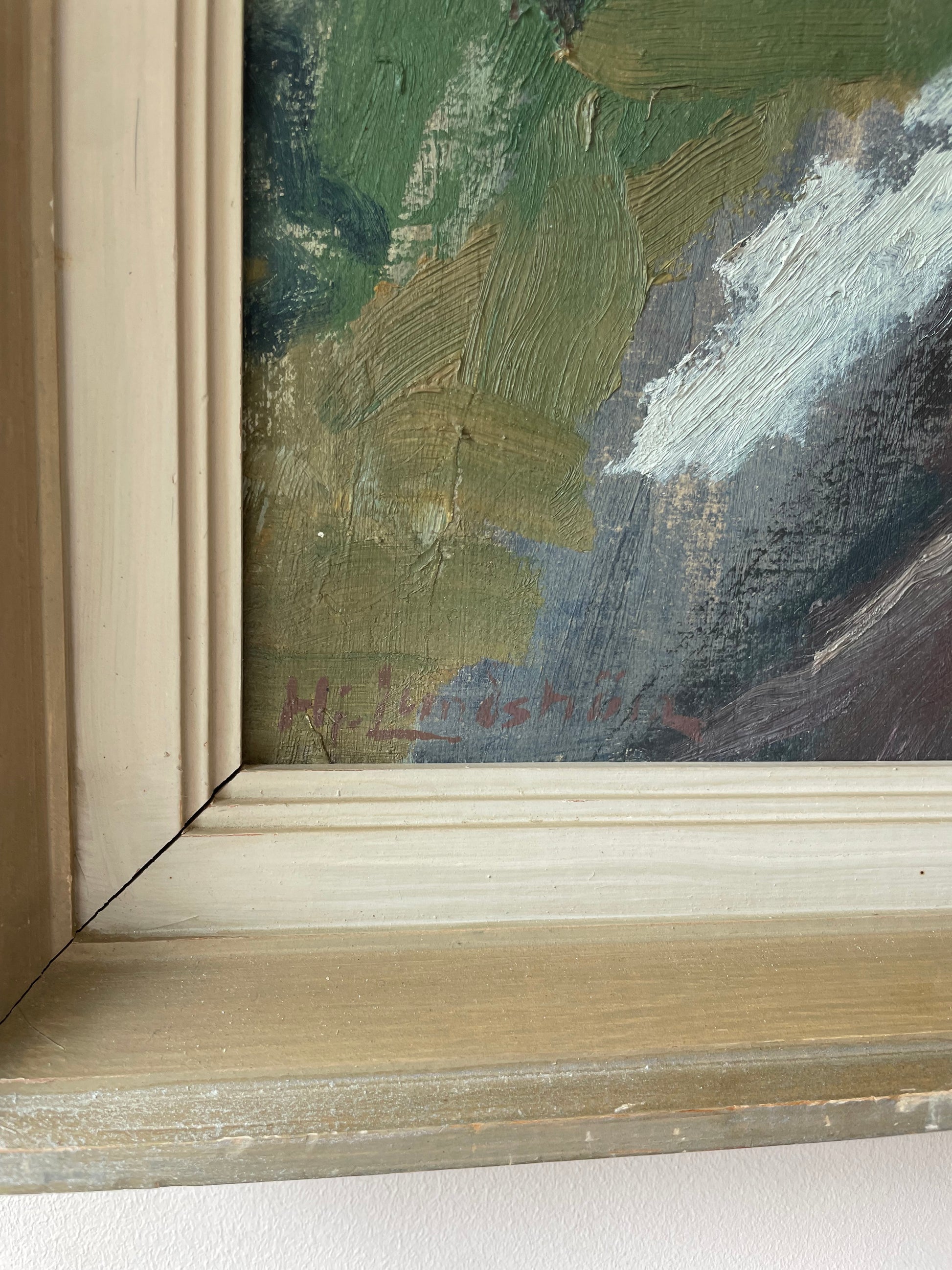 In original wooden frame and signed by Swedish artist Hjalmar Lindström.