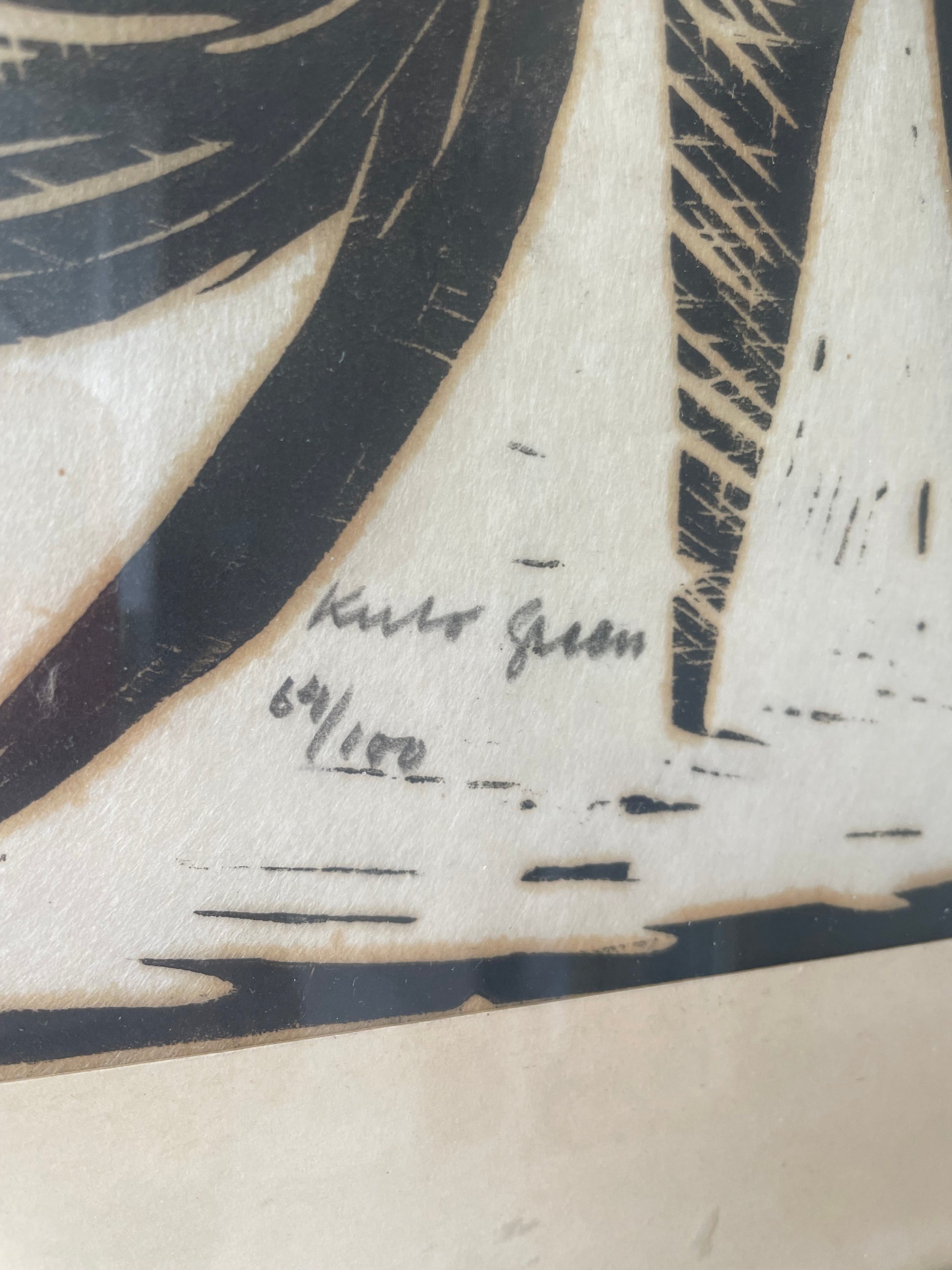 A bold and expressive woodcut portrait by artist Swedish artist Kulo Green (1913-1972).